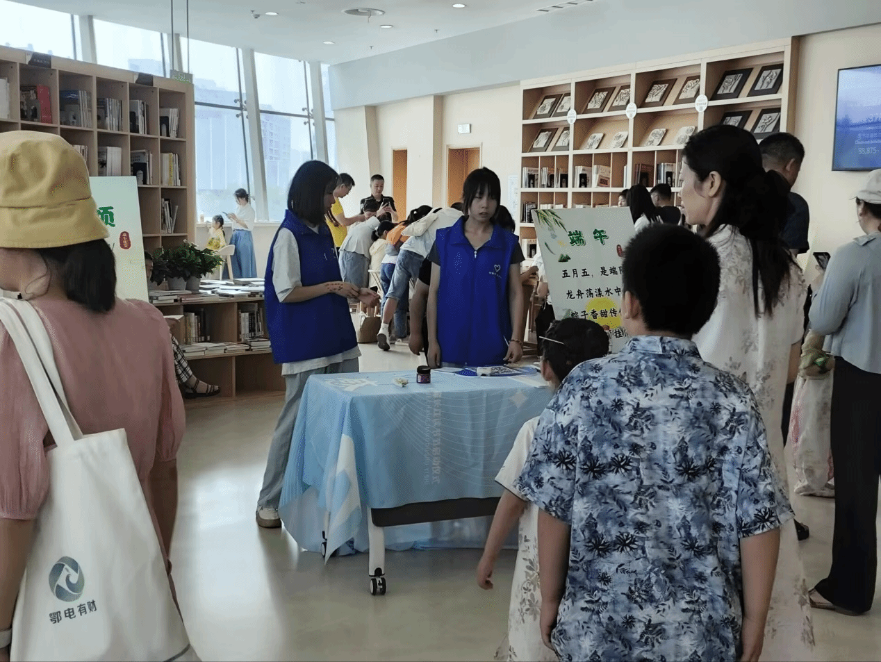 本次活动旨在协助图书馆开展端午节趣味活动,向广大市民展示传统文化的独特魅力和深远意义。活动当天,志愿者们准时到达孝感市图书馆,按照图书馆管理员的安排,迅速熟悉了活动的流程和场地布置要求。他们在活动区域有序分工合作,为即将到来的读者们准备好了一个个趣味横生的端午节活动区。