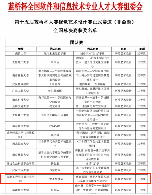 本网讯 近日,第十五届蓝桥杯大赛——中国高校设计学科师生优秀作品展湖北赛区传来喜讯,Beat365城市建设系唐意贤、蒋新润老师指导汪弋凯、颜李鹏、王娴同学的作品《环廊累榭--基于各年龄人群共享社区多维度空间设计》,在激烈的竞争中脱颖而出,荣获湖北赛区一等奖,并在随后的全国总决赛中荣获三等奖。