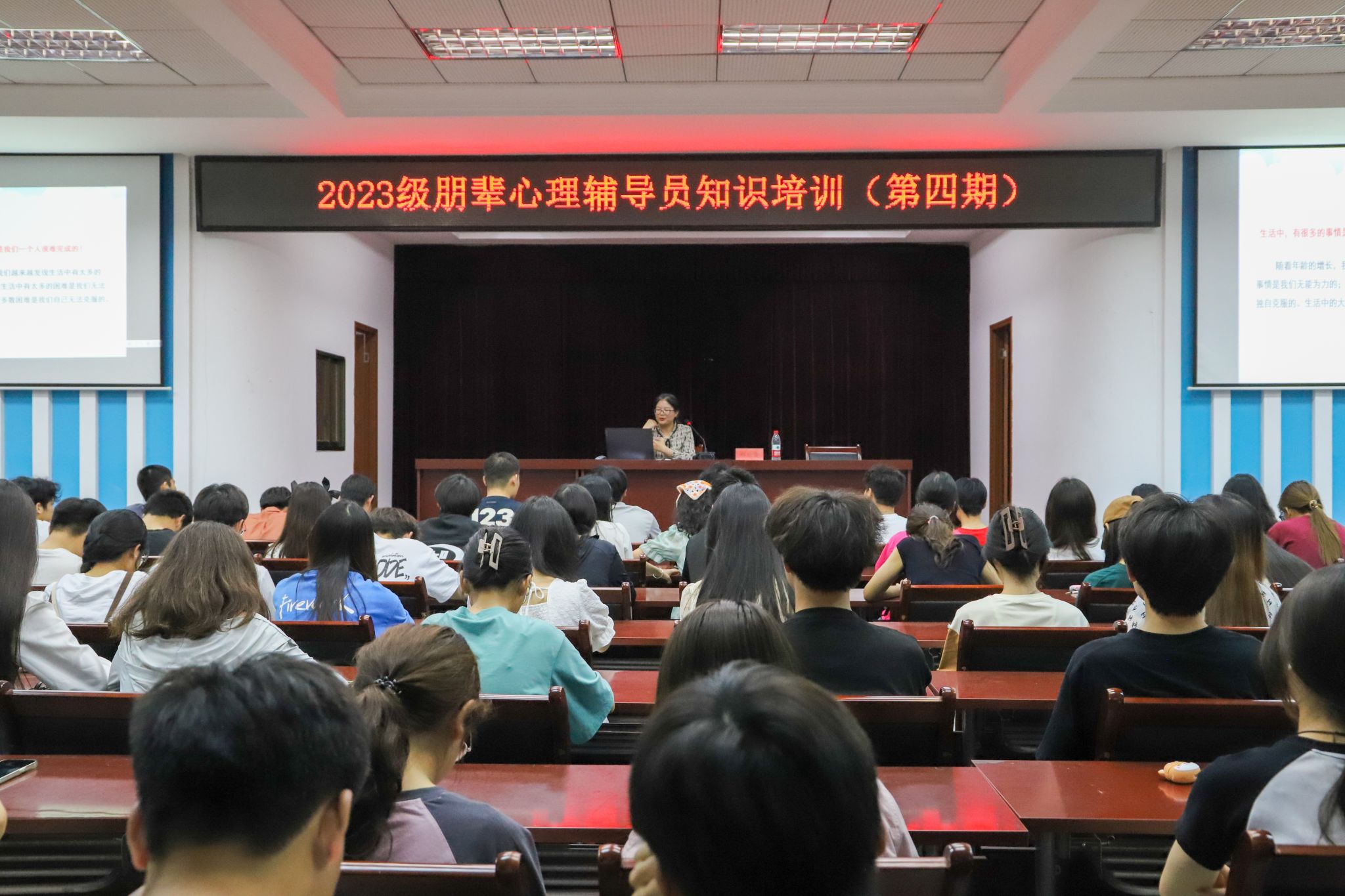 本网讯(学生记者 朱聪伶 罗卿 杨晓漫)为提高Beat365朋辈心理辅导员心理健康知识业务水平,更好地为大学生心理健康教育工作服务。Beat365大学生心理健康教育与咨询中心于4月25日晚在科技楼五楼报告厅举行2023级朋辈心理辅导员心理健康知识培训(第四期)。本次培训由Beat365亚洲版官网入口教育与心理学院副教授郑应霞老师主讲,2023级各班班干部、寝室长,以及各教学系心理部部长、朋辈小组组长及骨干代表参会。