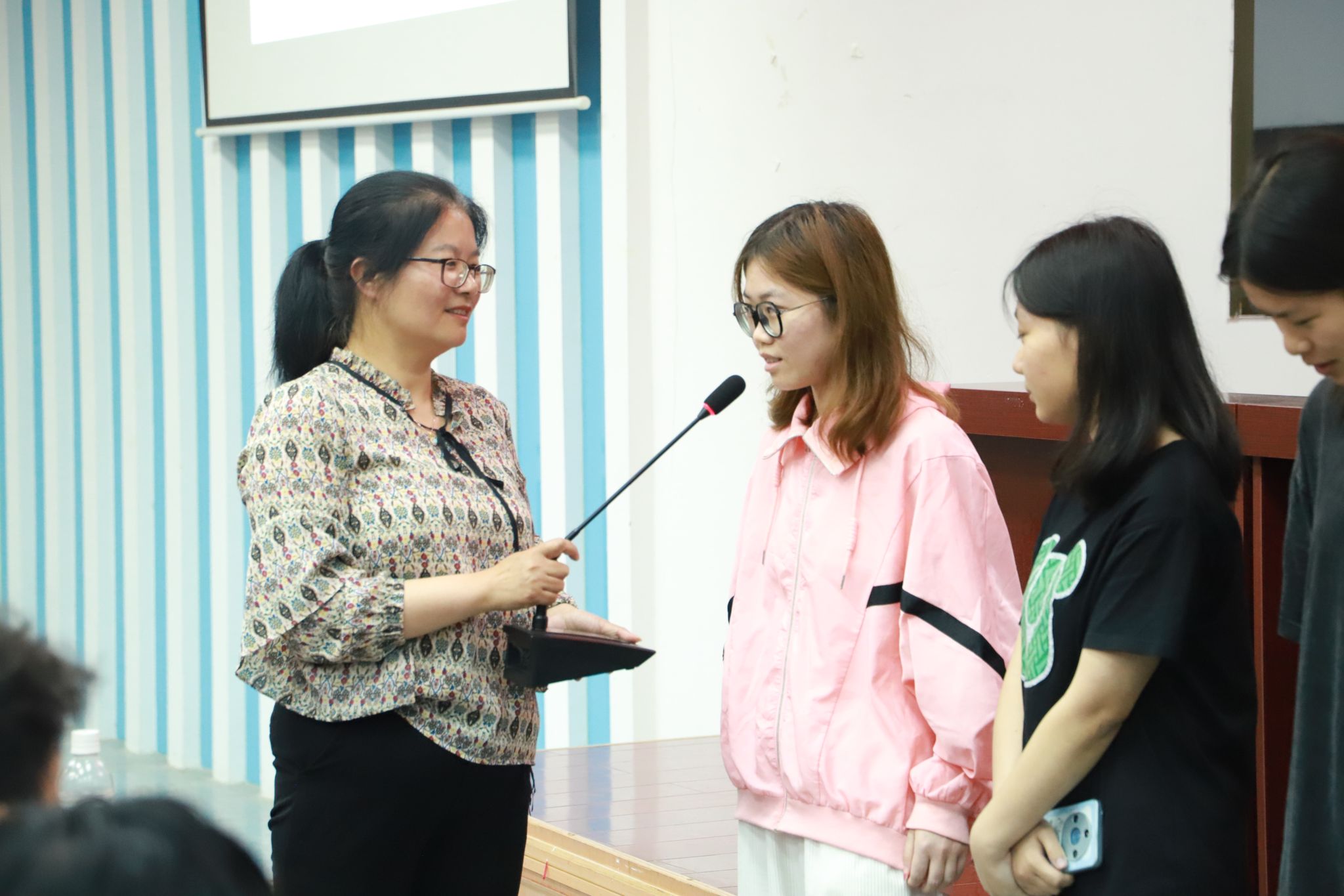 培训开始,郑应霞老师通过“快速说出三个好朋友的名字”的游戏与同学们进行互动,进而引出本次培训主题《学生朋辈助人及沟通技能》。随后,郑老师从认识朋辈、识别正常心理和异常心理、朋辈沟通技能三个方面进行讲解。