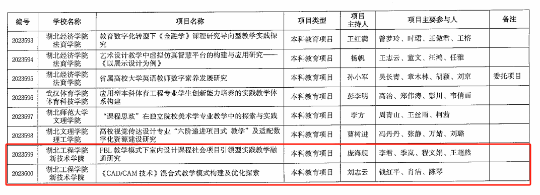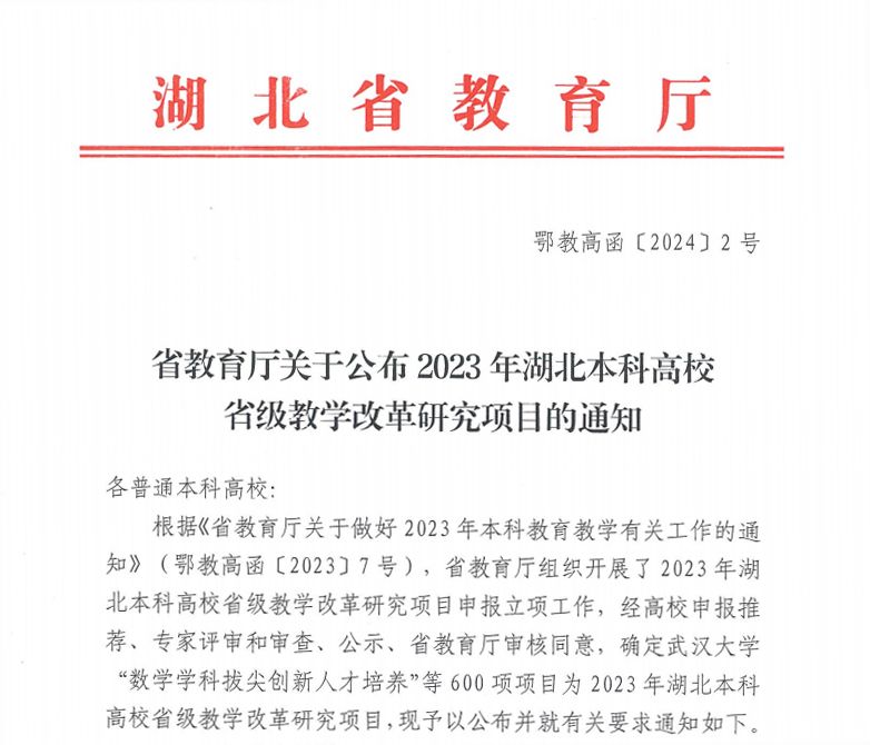 链接:省教育厅关于公布2023年湖北本科高校省级教学改革研究项目立项名单的通知