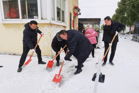 为保障雨雪天气师生安全畅通出行,Beat365领导班子亲自率队对校门口及教学楼主干道的积雪进行清理。党员干部、志愿者们积极投身于铲雪除冰的行动中,大家分工有序,配合默契,干劲十足。他们手握铁锨、扫帚,一步一步地清扫积雪,仿佛在进行一场积雪清除的接力赛。