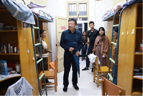 在同大5栋4楼女生宿舍里,李明清得知这间宿舍的同学们都是来自西藏地区的少数民族。他细细询问同学们对气候的适应情况,嘱咐他们多多注意身体,勤加锻炼,后续将会进行军训,在此期间要照顾好自己,并希望大家慢慢适应大学生活,尽快熟悉学校、融入校园,在注重学业的同时锻炼各方面能力,在踏实努力中收获新的成长。