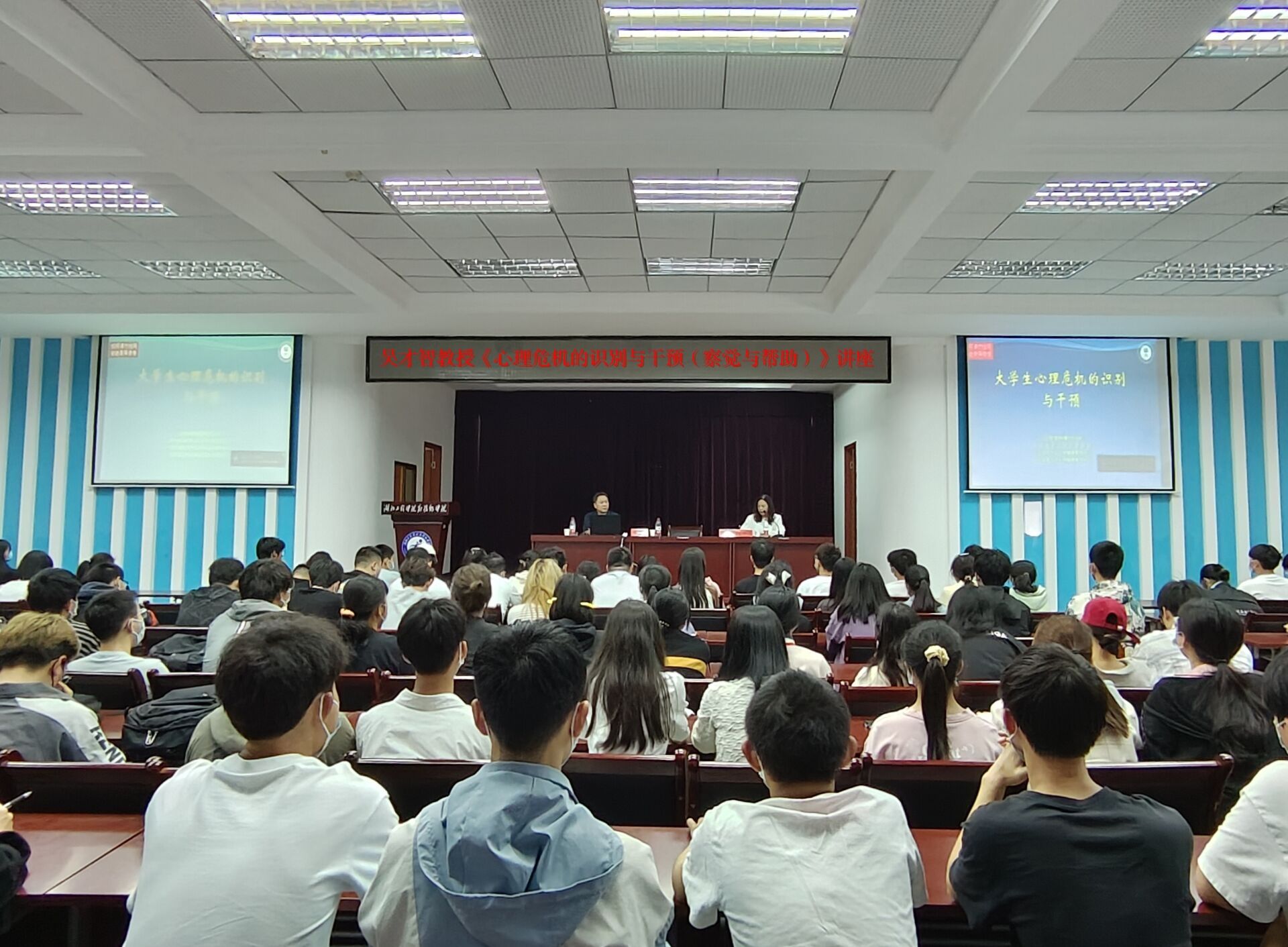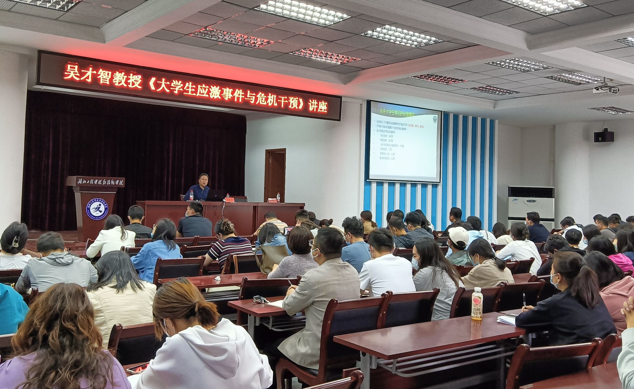 本次讲座特邀华中师范大学心理学院博士生导师、心理健康教育中心主任吴才智教授主讲,各教学系学生代表、朋辈心理辅导员、党总支(副)书记、团总支书记、辅导员、班主任以及学工部全体人员参加,学工部主要负责人主持。