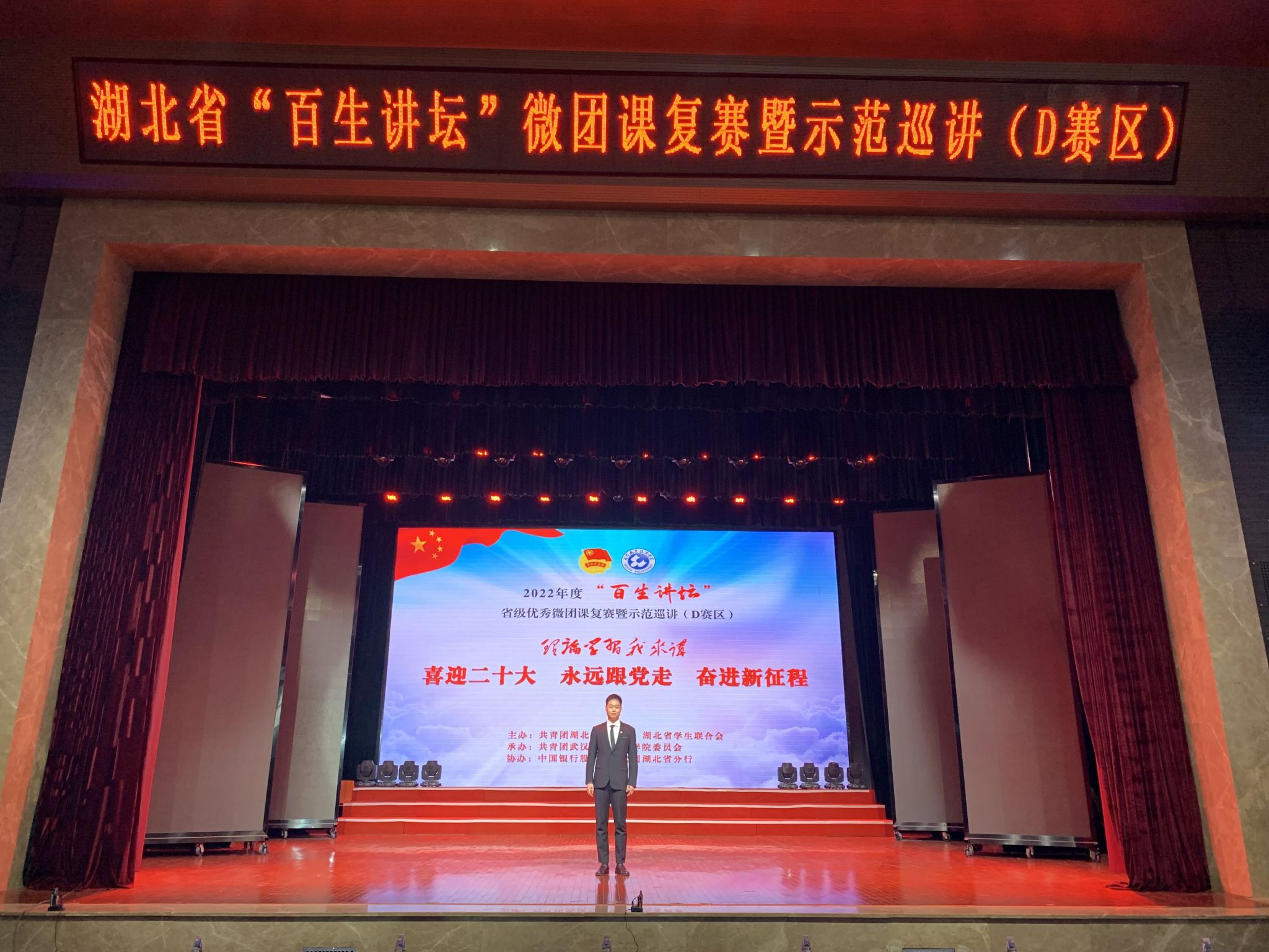 本次活动由共青团湖北省委、湖北省学生联合会主办,共青团湖北大学承办。大赛以“学习二十大,永远跟党走,奋进新征程”为主题。活动以娓娓道来的形式讲述主讲人故事,彰显青年学子对于国家和民族的赤诚之心和自豪之情,表达了一代代青年学子与祖国同频共振,立志做有理想、敢担当、能吃苦、肯奋斗的新时代好青年,为中华民族的伟大复兴而自强奋斗的决心。