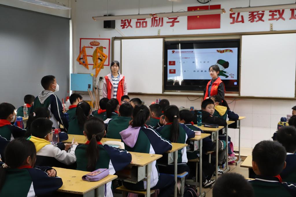 3月8日,志愿者们走进书院小学,他们以“强国有我——雷锋精神进校园”为主题开展了雷锋月知识宣讲活动。对于这些“小老师”们的到来,同学们表现地十分热情。宣讲分为三部分:第一部分为“知雷锋—听雷锋故事”;第二部分为寻找“班级里的小雷锋”;第三部分在同学们的歌颂中展开,同学们一起演唱了《学习雷锋好榜样》。