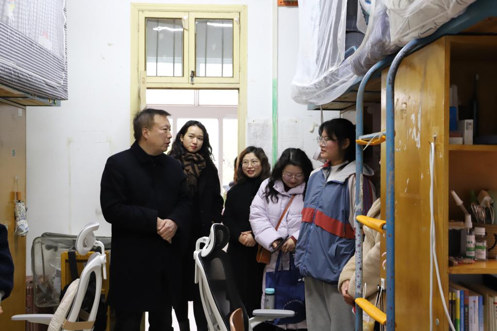 党委书记姚娟走访了城市建设系学生宿舍,与同学们亲切交流。她关心学生住宿生活情况,是否适应校园环境,并提醒同学们要多注意保暖,并就宿舍安全问题、室友关系等多个方面进行叮嘱,对于校园防盗问题给予学生建议,如随手关门、柜子上锁等,谈话中无不体现出对于同学们的关心,真正做到了亦师亦友。