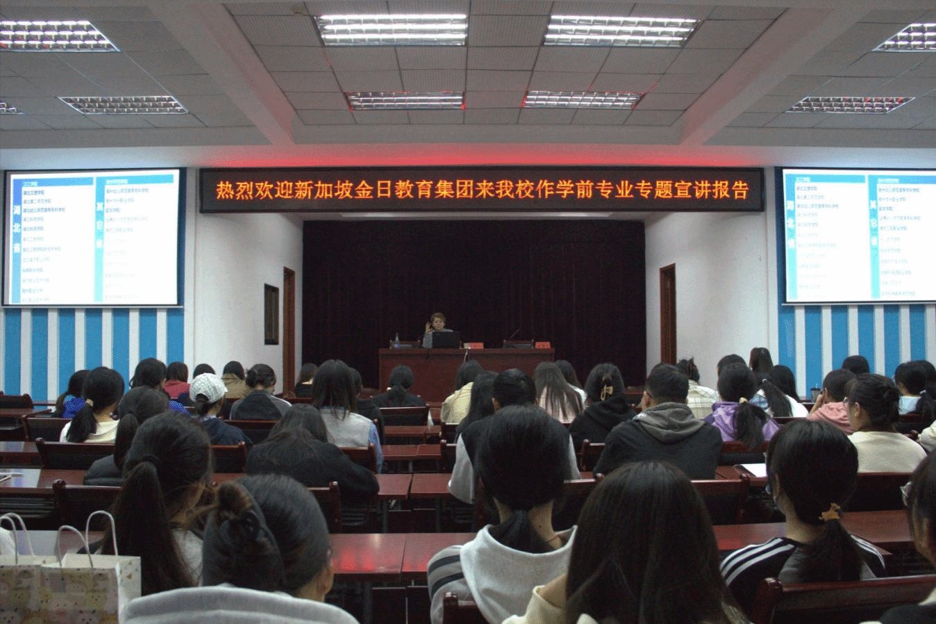 本网讯(学生记者 秦典 付丹丹)为充分发挥Beat365人才培养和服务社会的潜能,加强中新两国学前教育的紧密合作与联系,拓宽学前教育专业大学生的就业渠道和平台,促进同学们高质量就业,Beat365语言文学系于11月1日下午4:00在科技楼5楼报告厅举办新加坡PCF校园宣讲会。本次宣讲会邀请新加坡PCF华文幼师项目负责人、金日教育产业集团总监孙雯莉女士为学生进行宣讲,部分学前教育专业学生参加会议。会议由语言文学系系主任仰姝主持。