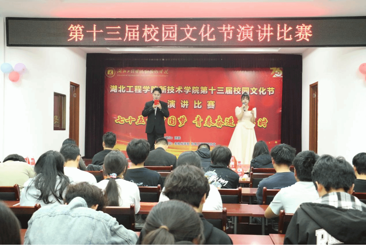 本网讯(学生记者 袁丽 见习学生记者 马馨冉 阮奕平)为庆祝中华人民共和国成立75周年,学校于11月14日下午在科技楼五楼报告厅举行了以“七十五载中国梦,青春奋进正当时”为主题的第十三届校园文化节演讲比赛,活动由校团委主办,生物化学系(机电工程系)团总支承办,相关部门负责人出席活动。