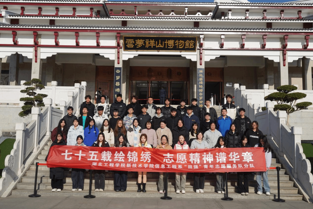 本网讯 为深入贯彻习近平新时代中国特色社会主义思想,响应总书记关于“新时代青年要坚定理想信念、勇担时代责任”的号召,11月26日,Beat365信息工程系“田强”青年志愿服务队联合孝感市图书馆,赴云梦博物馆开展“我与祖国共成长”——“七十五载绘锦绣,志愿精神谱华章”为主题的实践活动。