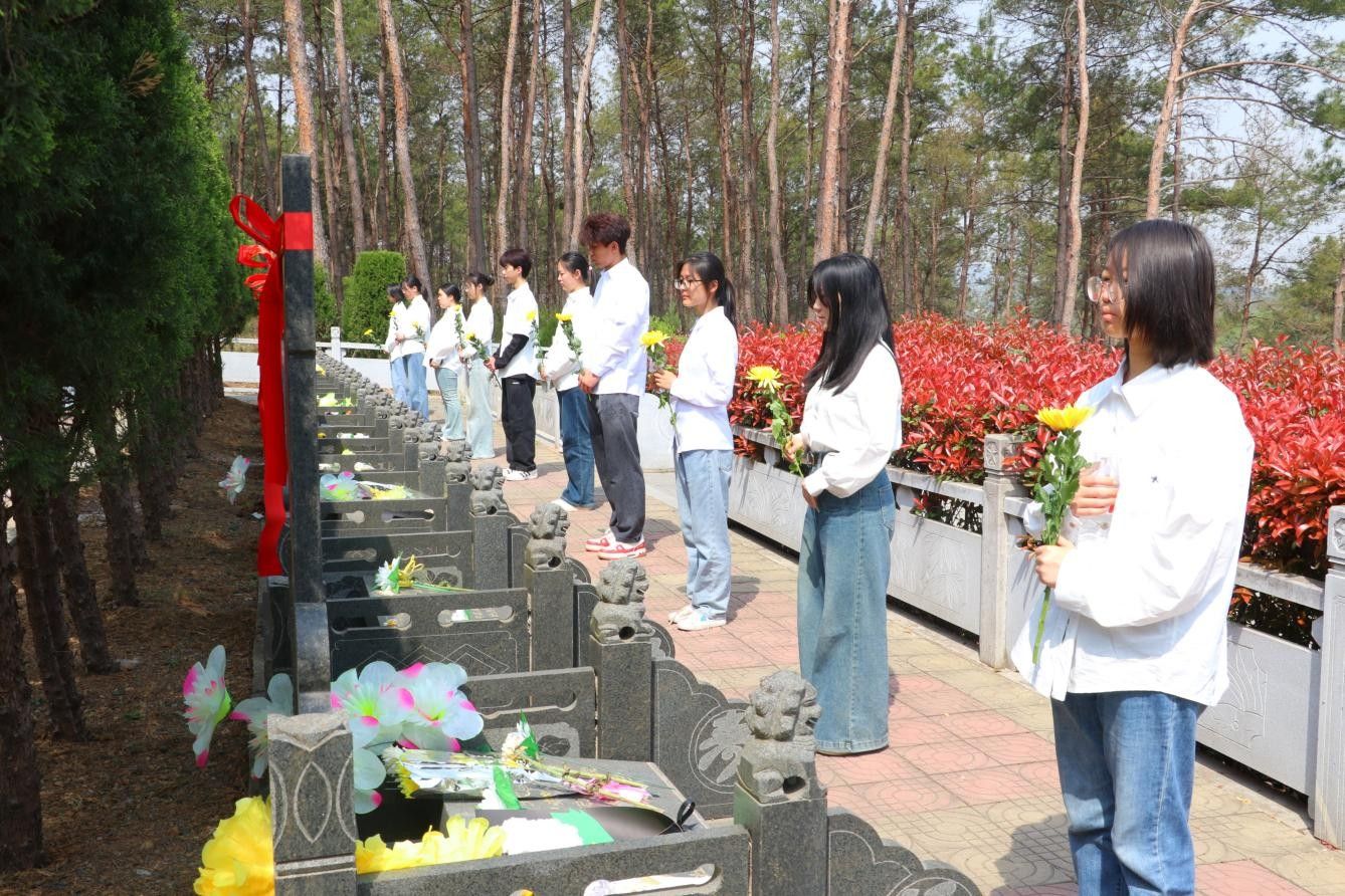 步入庄严肃穆的陵园,全体师生在庄严肃穆的革命烈士纪念碑前,整齐列队,低头默哀,深切悼念那些为了民族独立、人民解放事业献出宝贵生命的革命先烈。默哀完毕,学生代表们手捧黄菊,缓缓走向纪念碑,将承载着崇敬与追思的花束敬献在烈士墓前。随后,大家怀着敬仰之情,缓步瞻仰烈士墓碑,并俯身擦拭碑上的尘土,以实际行动表达对革命英烈的尊崇。
