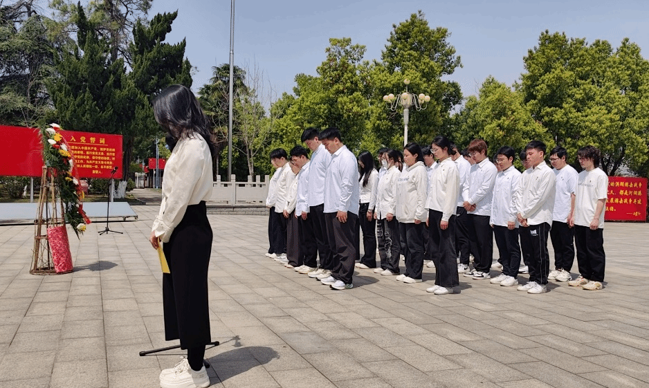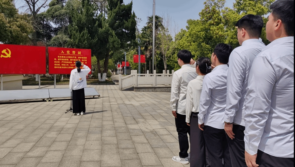 全体党员面向党旗,庄严重温入党誓词,铿锵誓言回荡在纪念园上空,彰显了新时代青年党员赓续红色血脉、勇担时代使命的坚定决心。