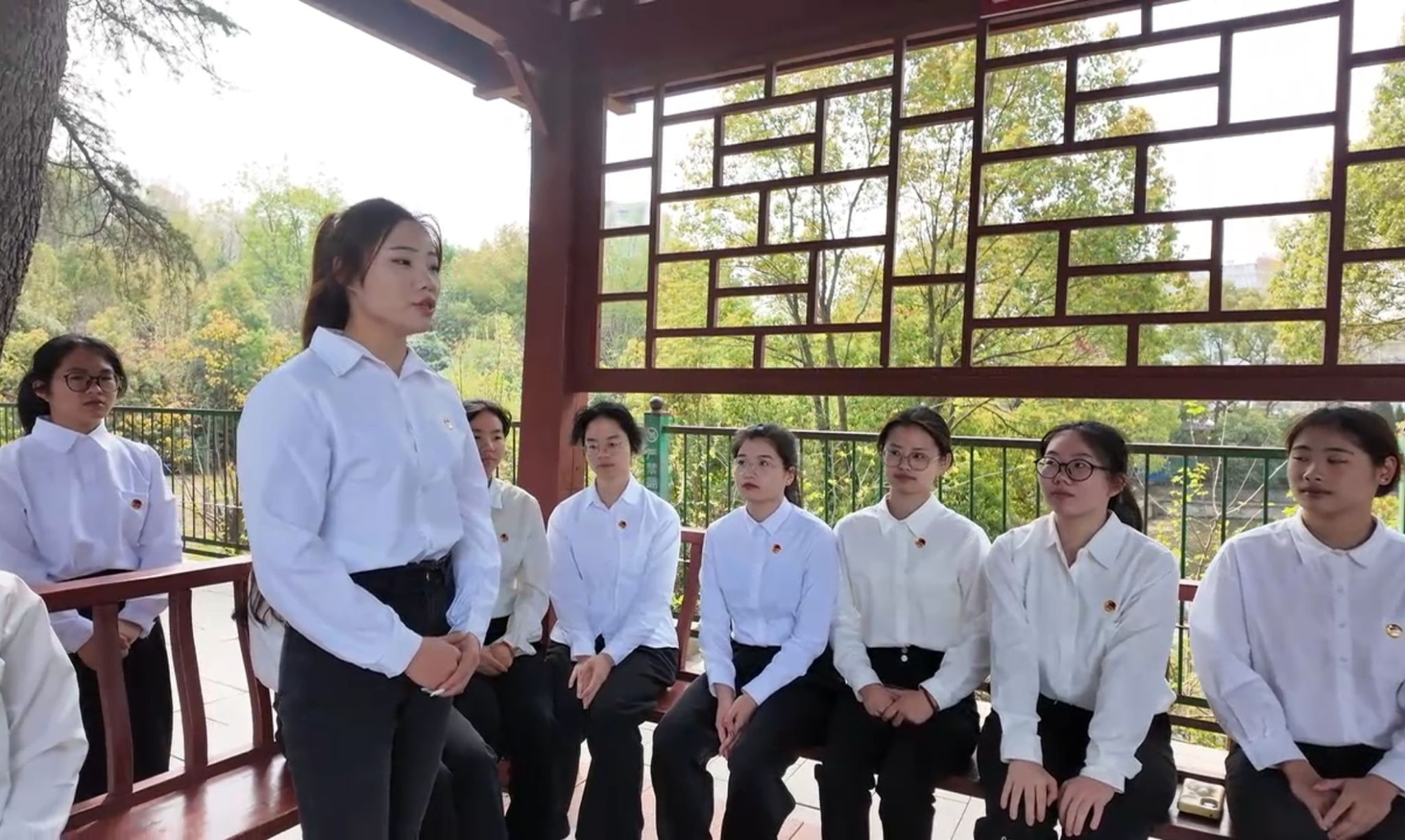 在烈士陵园红色讲堂内,财经政法系“大别山精神追梦宣讲团”成员赵文静、李梅、陈钰盈以“大悟革命史”为背景现场开展“英雄故事我来说”微党课,让大家深入了解了李先念、徐海东、刘华清等革命先辈在大别山地区浴血奋战的英雄事迹,深刻阐释了“坚守信念、胸怀全局、团结奋进、勇当前锋”的大别山精神。学生党员代表辛恭明分享了学习体会:“先烈们用生命铸就的精神丰碑,永远是我们前行路上的灯塔。我们要将红色基因转化为刻苦学习、服务社会的实际行动。”