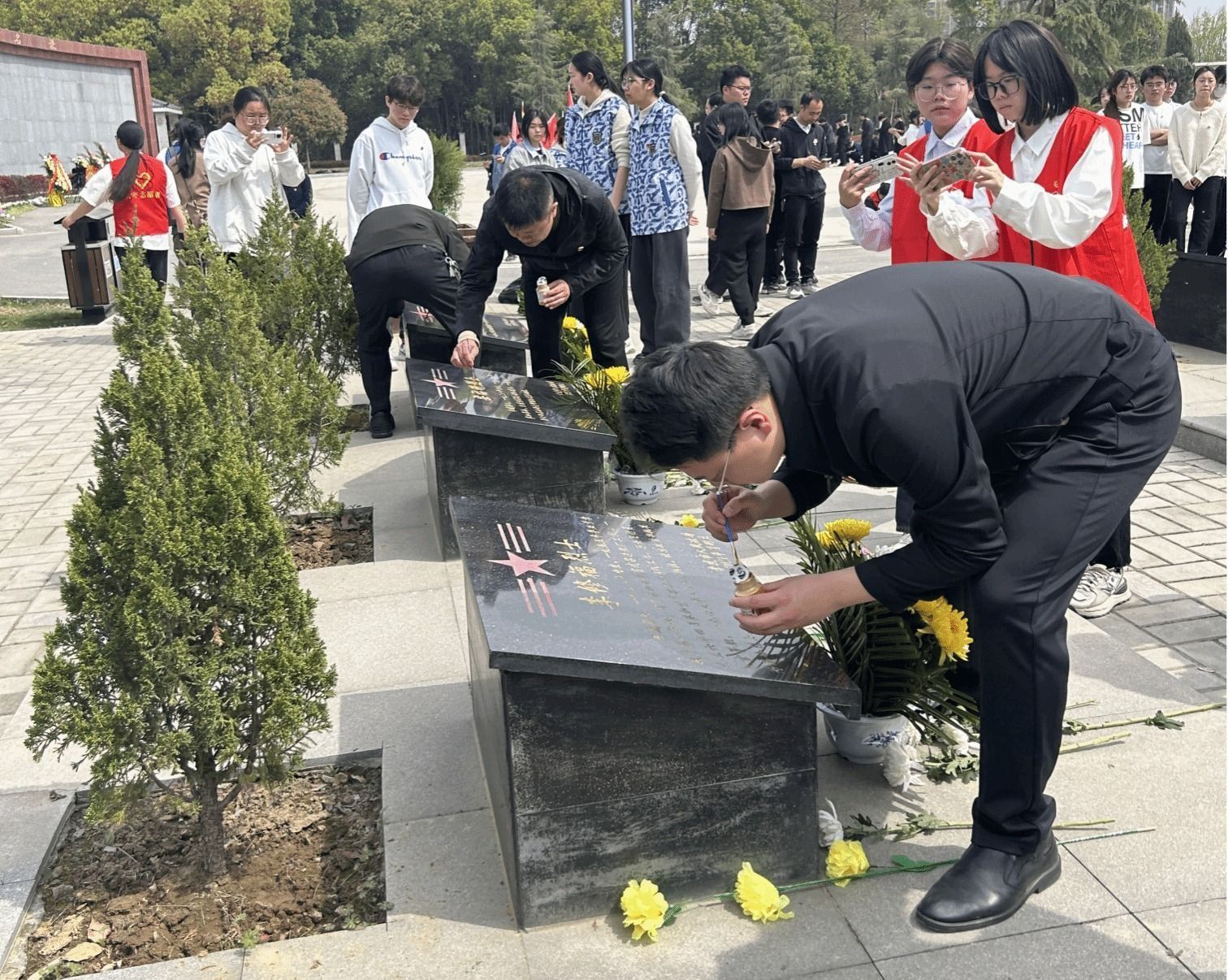 集体献花仪式中,师生们手持白色菊花,缓步绕行革命烈士纪念墙和烈士墓群,将寄托哀思的鲜花轻轻摆放在碑前。随后开展的烈士碑描金描红和陵园大扫除活动,让参与者在实践中感悟"崇尚英雄、捍卫英雄、学习英雄、关爱英雄"的深刻内涵。