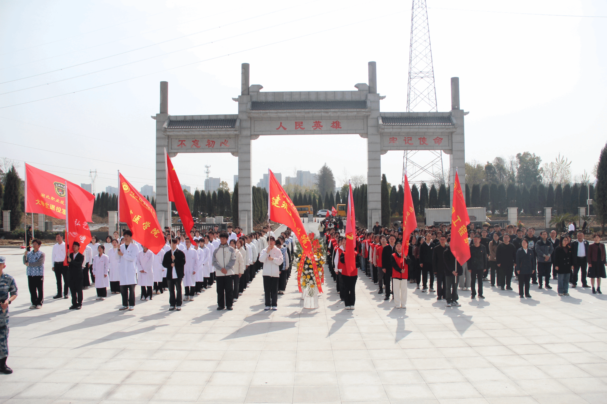 早晨8点,参加此次活动的师生代表从各自单位出发,徒步前往孝感市革命烈士陵园。活动在庄严的国歌声中拉开帷幕。全体人员肃立齐唱国歌后,各单位代表依次向革命烈士纪念碑敬献花篮;在《献花曲》的哀乐声中,全体人员面向纪念碑行三鞠躬礼,深切缅怀为民族独立和人民解放事业英勇献身的革命先烈。