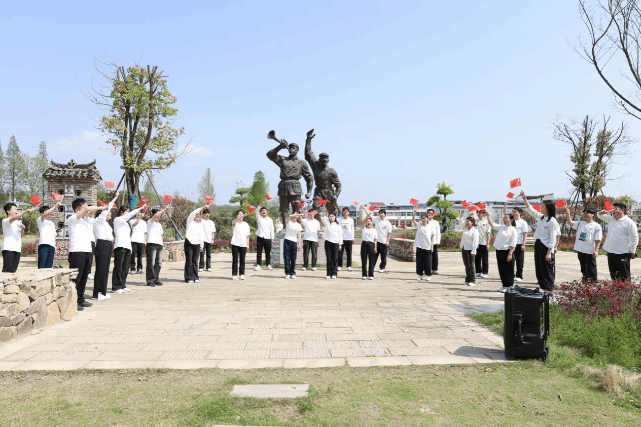 最后,全体师生在旧址广场前如历史年轮环抱苍穹,以双半弧形列阵,共同合唱《歌唱祖国》,激昂的歌声在旧址广场上空回荡,大家挥舞着手中的国旗,用饱满的热情和嘹亮的歌声,唱出了对伟大祖国的深深热爱和美好祝福。