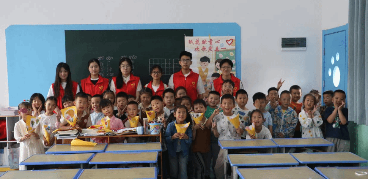 本网讯(学生记者 兰晓轩禹 见习学生记者 杜思童)5月6日,学校“田强”青年志愿服务队在挂口中心幼儿园开展“纸花映童心,欢歌庆五一”主题教育活动。