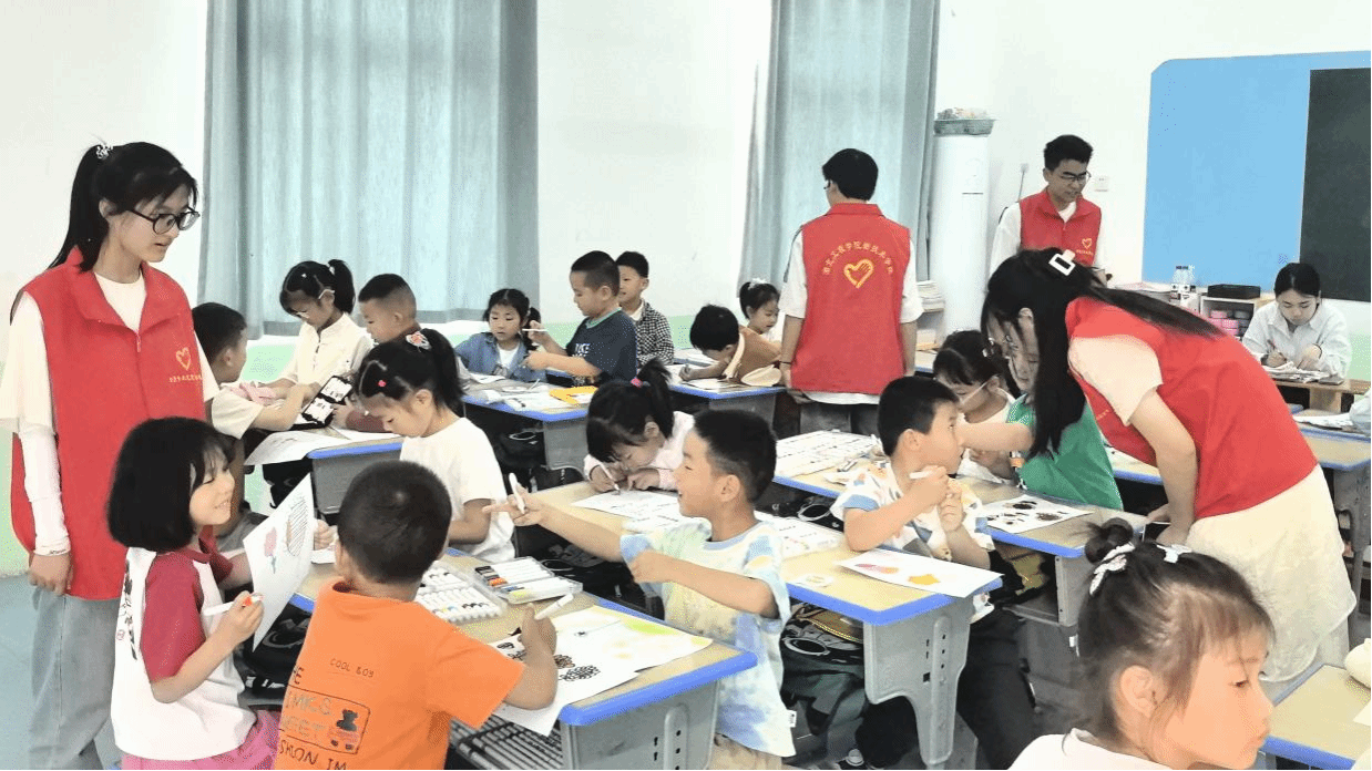 在讲解的时候,志愿者提问:“小朋友们,你们在生活中都见过哪些辛勤的劳动者呢?”孩子们一个个兴奋地举手,“工人!”“农民!”“邮递员!”在孩子们热情的回应中,志愿者帮助他们加深和拓宽对劳动人民的理解,让孩子们认识到除了工人、农民,还有教师、医生、环卫工、警察等等,很多很多在背后默默付出的劳动者。