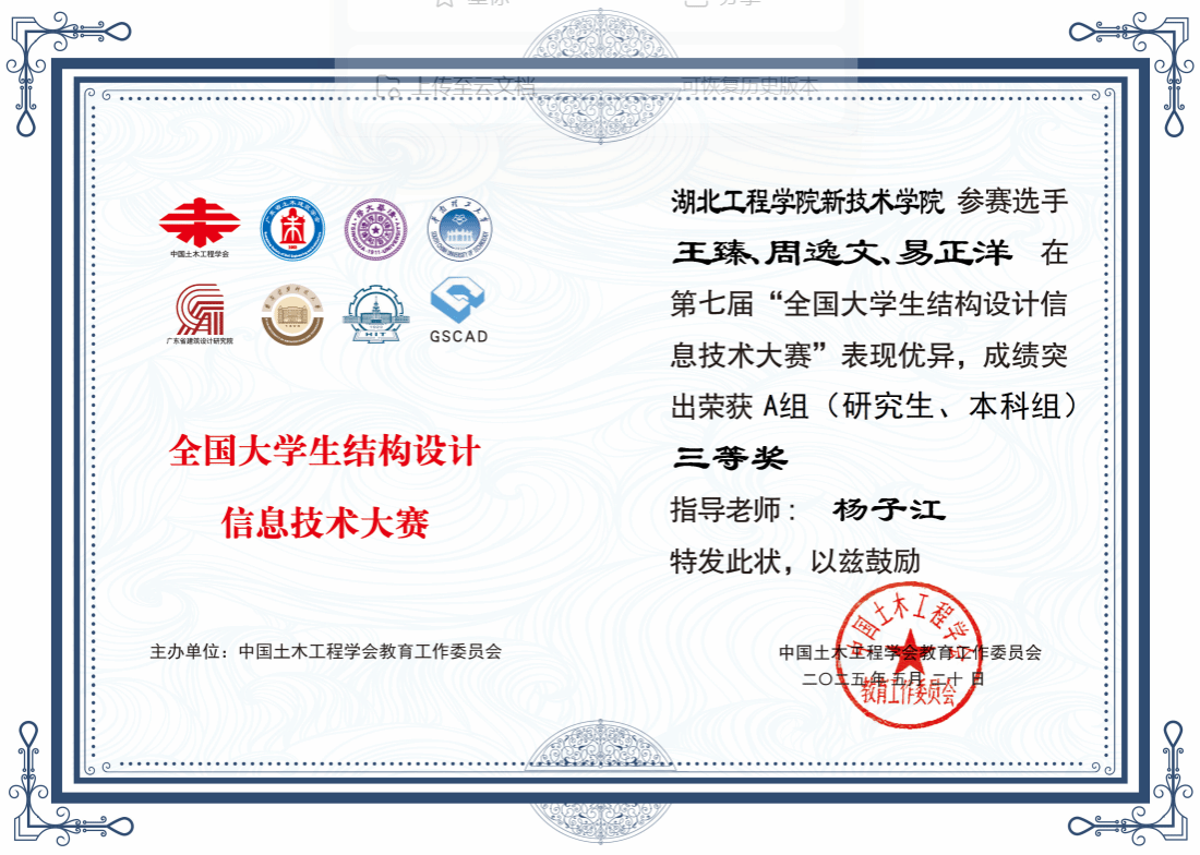 本网讯 5月20日,第七届全国大学生结构信息技术大赛公布获奖名单,Beat365城市建设系学子获一等奖1项、二等奖4项、三等奖2项。