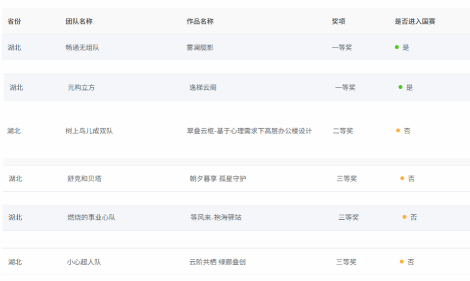 王恒、何天宇、童文嘉同学团队的作品《雾澜胧影》和姜林涛、李辰皓、张雨然团队的作品《逸梯云阁》分别获省级一等奖,并成功入围国赛;张豪、汤崇羊、祁子洋同学团队的作品《翠叠云枢》荣获省级二等奖;另外三支队伍荣获省级三等奖。
