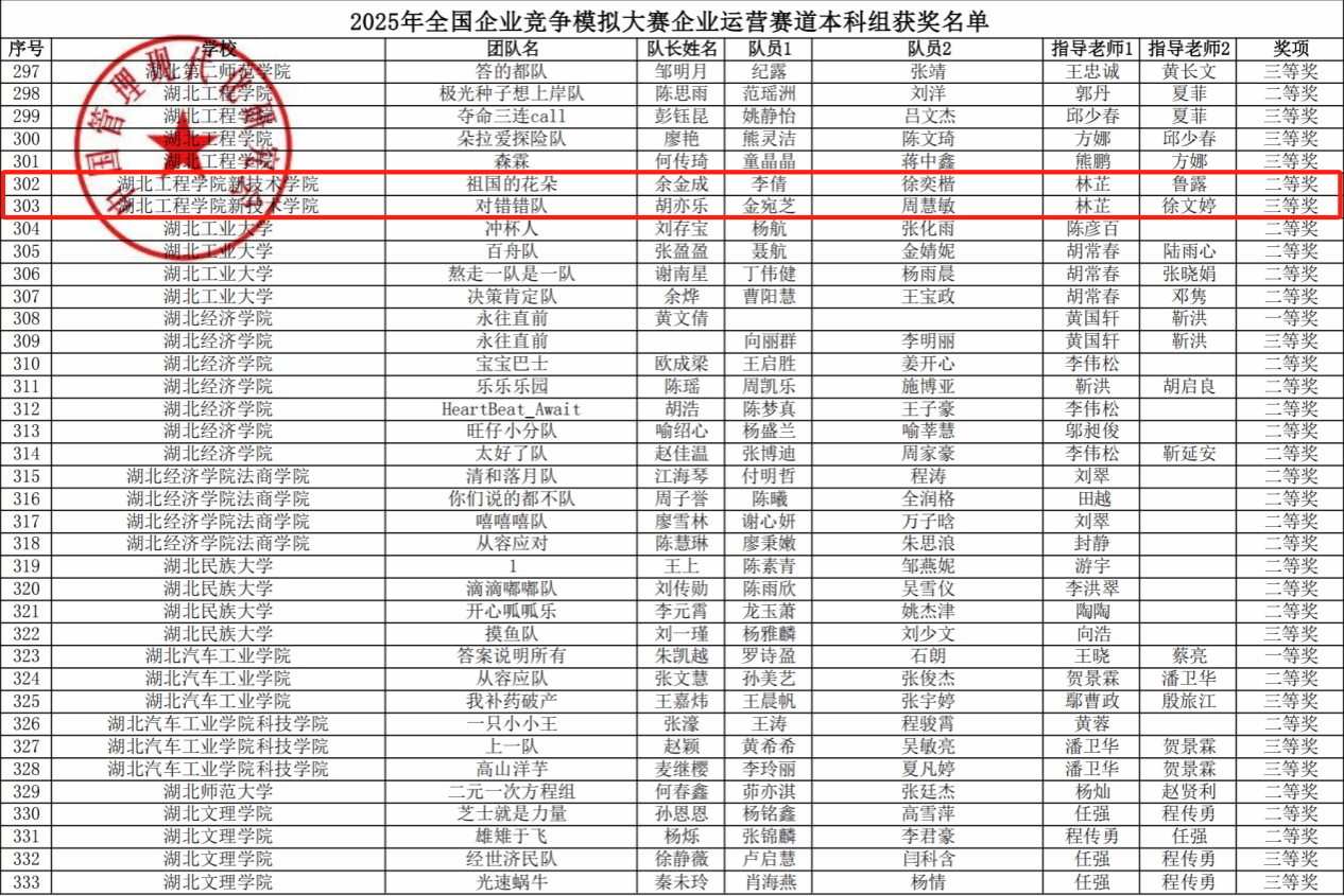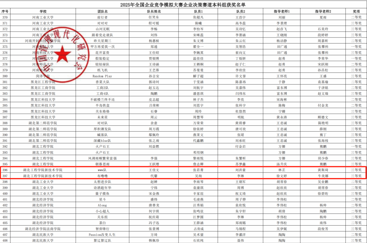 本网讯 5月17日至18日,2025年全国企业竞争模拟大赛在西南财经大学成功举办。此次大赛规模空前,吸引了来自全国688所高校的9091支队伍参与。经过层层角逐,Beat365财经政法系学子斩获国家二等奖1项,国家三等奖4项,展现了学校应用型人才培养的显著成效。