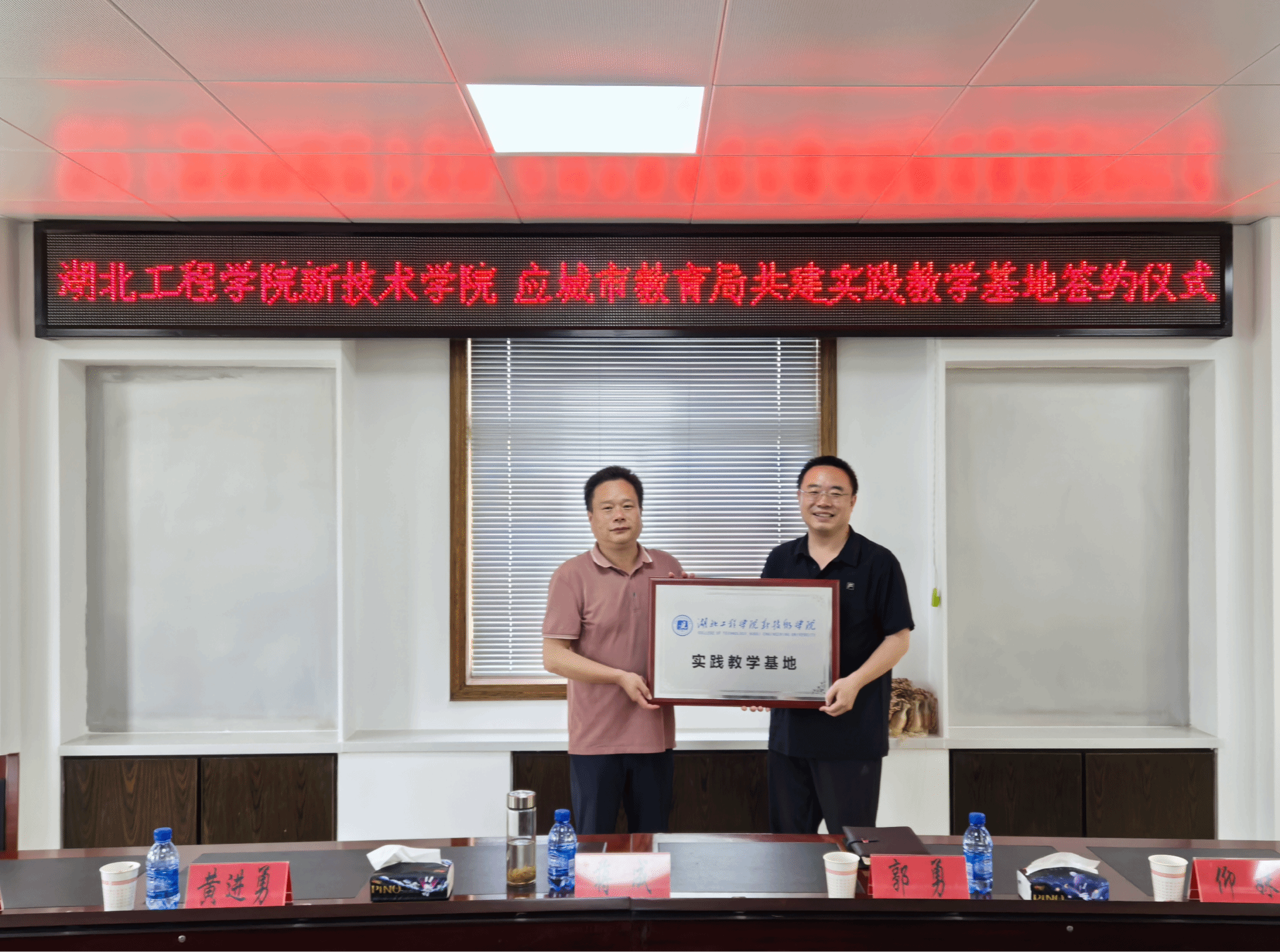 座谈会后,蒋成与王杰代表双方签署实践教学基地合作协议,并共同为基地揭牌。同时,前往应城市实验初级中学和应城市开发区学校,探望正在一线实习的学生。