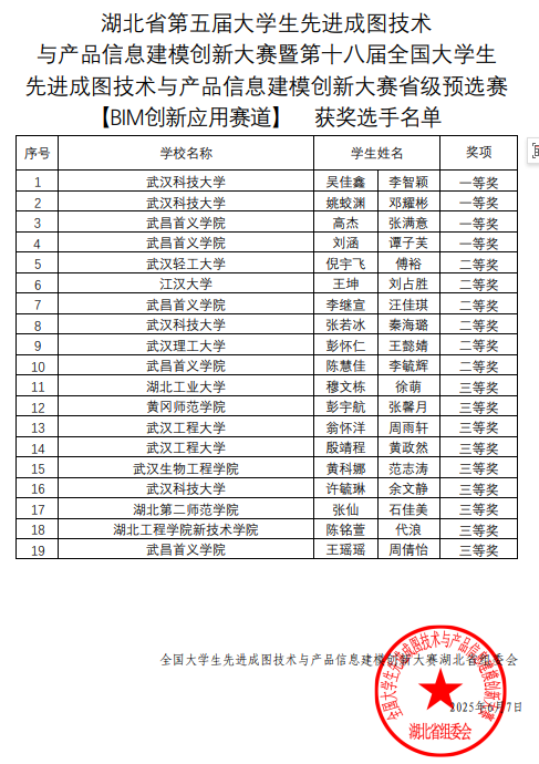 本网讯 6月7日,湖北省第五届大学生先进成图技术与产品信息建模创新大赛暨第十八届全国大学生先进成图技术与产品信息建模创新大赛省级预选赛落下帷幕,Beat365城市建设系获得省级一等奖2项、省级二等奖5项、省级三等奖3项,机电工程系获得省级一等奖1项、省级三等奖2项。