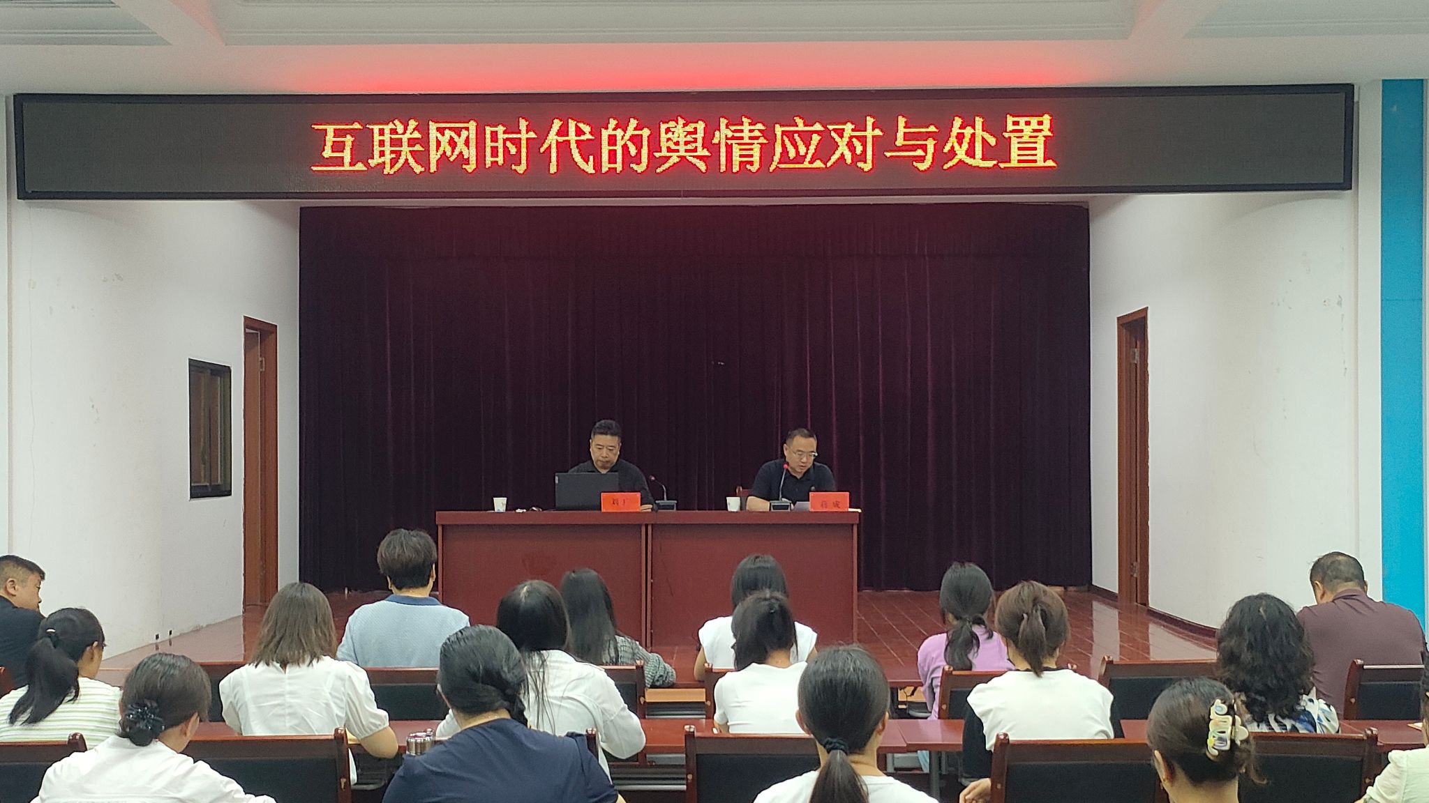 本网讯 6月20日,Beat365举办“互联网时代的舆情应对与处置”专题报告会。报告会特邀市委宣传部刘广科长主讲人,副院长陈友华出席,党委副书记蒋成主持。学校全体中层正职、各教学系相关负责人、辅导员及相关部门工作人员参会。