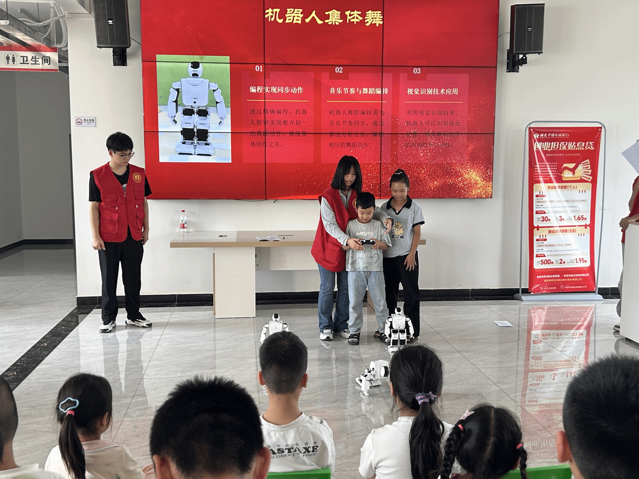 实践小分队在基地所在村庄的党员群众活动中心开展宣讲活动,为乡村留守儿童讲解红色精神,通过趣味编程游戏、机器人展示等活动,激发孩子们对科学的兴趣。
