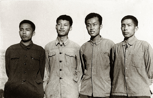1973年,习近平和延川县北京知青雷平生(左一)、陶海粟(右二)、雷榕生(右一)