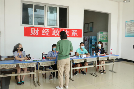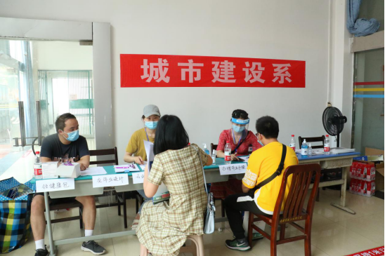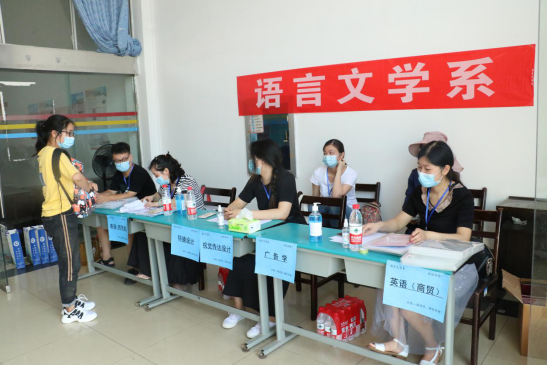 进校后的毕业生在工作人员的指引下前往各教学系指定地点位办理毕业手续,到达指定点位后,工作人员会首先向返校学生发放“防疫健康包”,随后收取毕业生的毕业相关材料并进行核查登记。