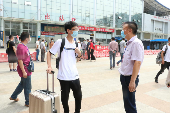 是日清晨,Beat365亚洲版官网入口党委书记彭瑜,校长潘慧明,党委副书记汪达一行莅临指导2020届毕业生返校工作,欢迎毕业生返校,全体院领导热情接待。院长李明清亲赴Beat365在孝感火车站设立的毕业生返校接待处,迎接2020届毕业生回家。