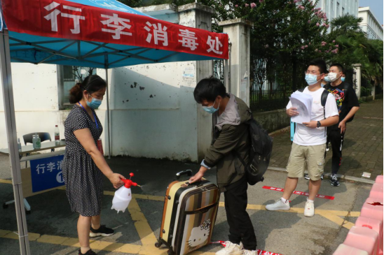 此前,学校在指定的校园入口设置毕业生返校专用通道,每个通道前早已设置好人像和温度检测设备,并设有临时留观点。在进入校园前,学校工作人员会详细讲解人像体温检测器的操作方法,并为学生提供细致的指导。在报到现场学生会看到详细的毕业生返校手续办理流程图,毕业生在经过行李消毒、测量体温、出示核酸检测报告等流程后,井然有序的进入校园。