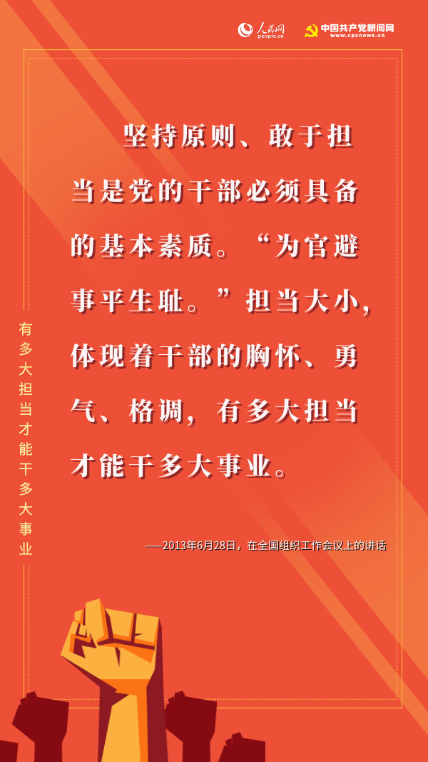 担当精神是共产党人从历史中继承的优秀品质。近年来,习近平总书记在不同场合的重要讲话中多次强调责任担当。“干部敢于担当作为,这既是政治品格,也是从政本分。” 如何理解担当作为?怎样坚守担当作为?人民网·中国共产党新闻网带您听一听总书记怎么说。