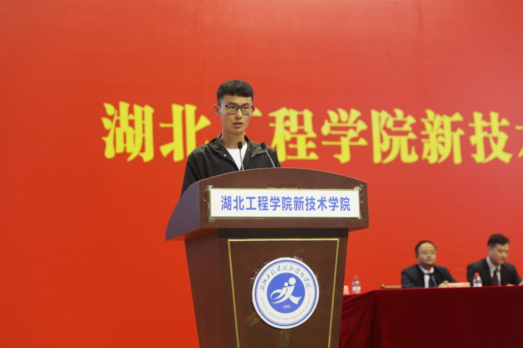语言文学系郜一峰代表新生发言,他表示自己将秉承“明德明志,求是求新”的校训,发扬“严谨、勤奋、求实、创新”的学风,在刻苦学习中培育自己“精于专业知识,勇于开拓创新”的学术修养,以“行胜于言”的探索精神开启新的征程。