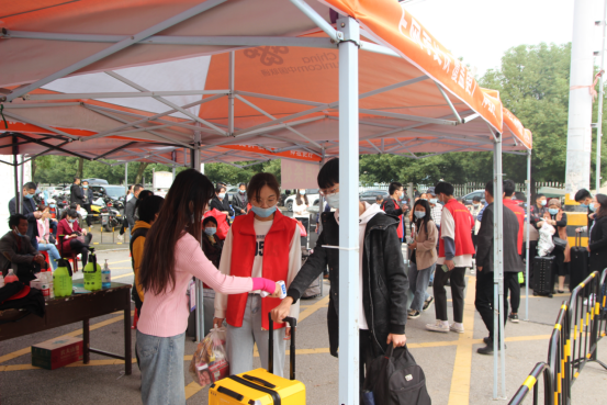 登记处一位新生提着大包小包,通过询问我们得知,他是独自一人坐火车来学校的,可他的眼里没有流露出丝毫疲惫,即使隔着口罩,也能感受到他那热情洋溢的笑脸。“同学互帮互助,学长学姐十分热心。自己一下火车就看到新院迎新的横幅,这么多行李全是志愿者帮着提到车上的,我们坐着迎新大巴直达校门口后还有学长帮提行李,引导报到。”他说:“温暖、感动是对学校的第一印象。”