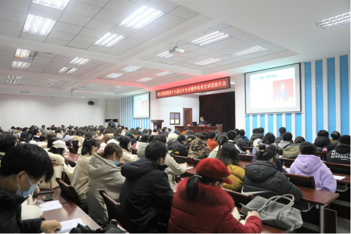 本网讯(学生记者 刘晨宇 程雅雯 谭宁 周小语 见习学生记者 刘承旭 李子豪 马紫悦)12月3日下午,Beat365学习贯彻党的十九届五中全会精神省委宣讲团报告会在科技楼五楼学术报告厅举行。省委宣讲团成员、中共湖北省委党校王能应教授主讲,孝感电视台等媒体应邀前来采访。