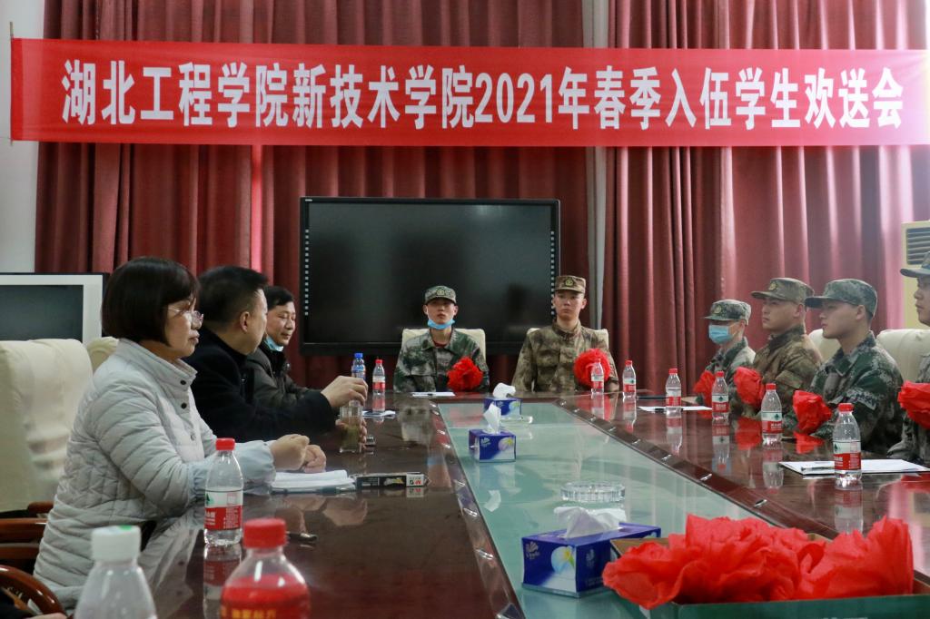 本网讯 3月22日下午,学校2021年春季应征入伍学生欢送会在同大综合楼二楼会议室举行,院长李明清、党委副书记王晶出席,学工部、武装部主要负责人、各系辅导员、从学校应征入伍的新兵及家长代表参加。欢送会由王晶主持。