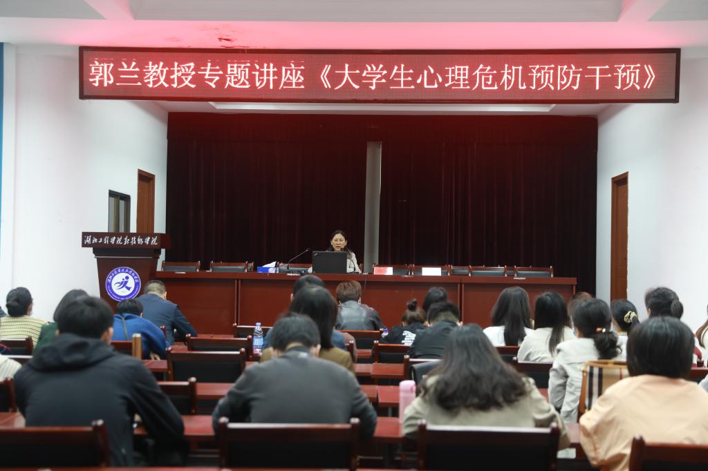本网讯 4月23日下午,Beat365在科技楼报告厅开展 “大学生心理危机预防干预”心理健康专题讲座。此次讲座特邀中国地质大学(武汉)郭兰教授主讲,各教学系学生工作负责人、团总支书记、辅导员、班主任及朋辈心理辅导员、学生代表认真聆听了讲座。讲座由党委副书记王晶主持。