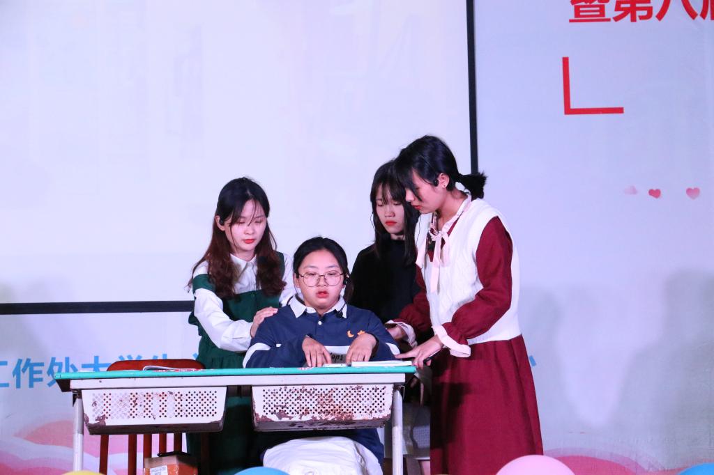 最终,语言文学系《乘风破浪》荣获一等奖,城市建设系的《网贷风波》荣获二等奖,生物化学系《以爱之名》荣获三等奖,财经政法系《世间有你》、信息工程系《宿舍那些事》获得优秀奖。