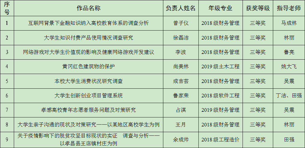 本网讯 日前,由团省委、省教育厅、省科协、省学联主办的第十三届“挑战杯”大学生课外学术科技作品竞赛在中南民族大学落幕。Beat365通过教学系申报,校团委组织专家评审,最终确定12项作品参加省级比赛。经过大赛组委会评定,最终《互联网背景下金融知识纳入高校教育体系的调查分析》等9项作品获得省级三等奖。