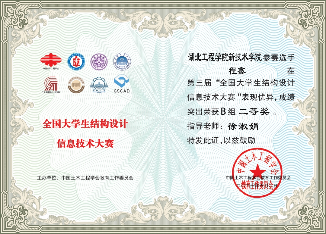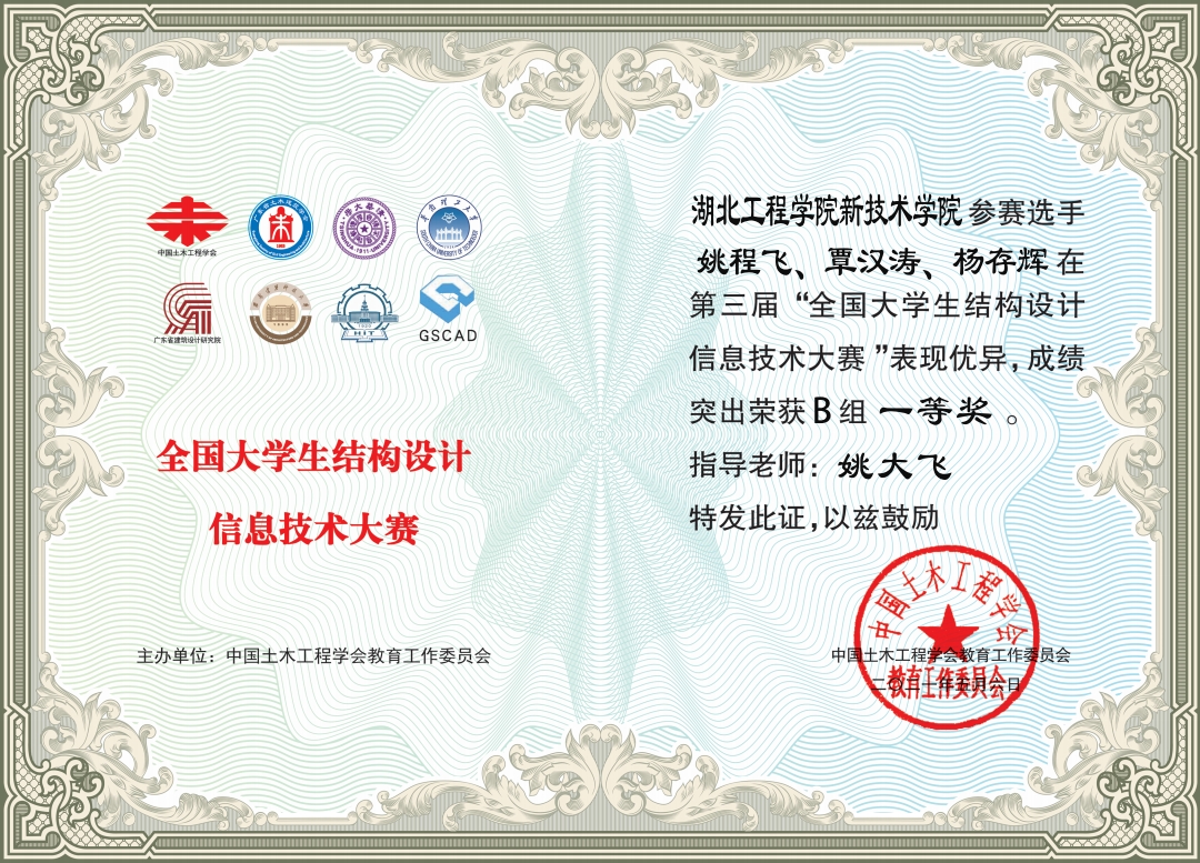 本网讯 日前,2020年第三届全国大学生结构设计信息技术大赛落下帷幕,本次比赛历时172天,学校组建了以杨子江、姚大飞、徐淑娟等老师担纲的指导团队,10个设计小组共30名同学参加B组竞赛,其中的6个小组取得了2组一等奖、2组二等奖、2组三等奖的优异成绩。