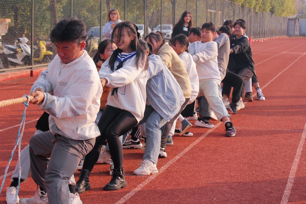 在比赛中,参赛者们配合默契,共同合作,展现了团学干部们的组织协调水平和团队协作能力。“绳舞青春”舞动着青春的活力,“太白急行军”挥洒着青春的汗水,“独腿长征路”踏步着青春的激情,而“同心击鼓”和“拔河”更是生动展现了选手们团结协作的青春力量。整个趣味运动会的气氛热烈而又紧张,扣人心弦又不失活泼。比赛现场的掌声和笑声、观众们的“加油”声、获胜者的欢呼声,还有场上场下进行互动交流、调侃的声音,让整个比赛过程都充满了欢声笑语。经过一个下午的奋力比拼和团结协作,大家愉快地完成了比赛,趣味运动会也在大家的笑声中圆满收场。