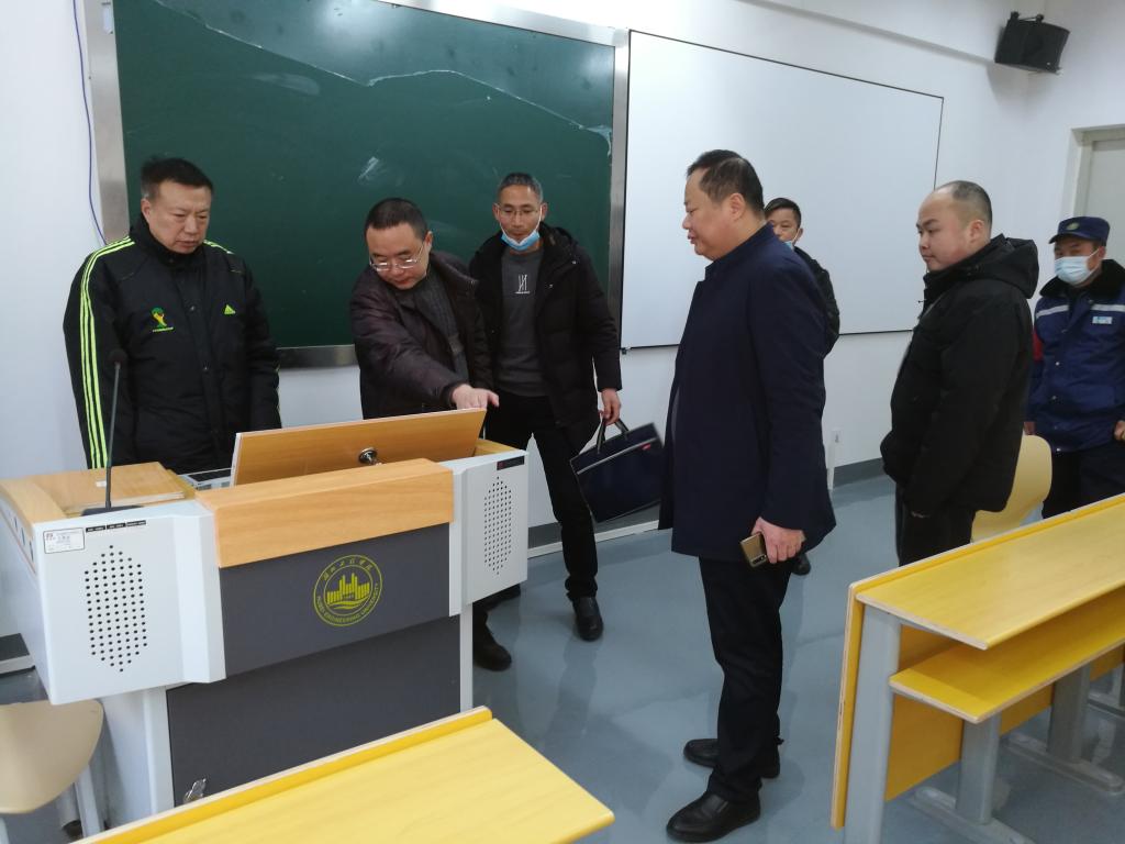 本网讯 2月23日下午,院长李明清、副院长陈友华、蒋成带领教务处、后勤服务处等相关职能部门检查三园区开学前准备工作。李明清一行查看了三园区2号教学楼1-2层教室的投影仪、电脑及中控系统等教学设备的调试准备及教学楼卫生情况。