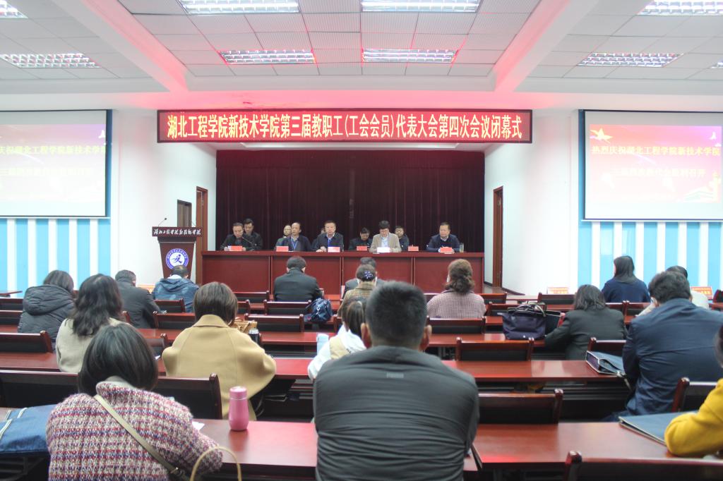 本网讯 3月4日,学校第三届教职工(工会会员)代表大会第四次会议胜利召开。院长李明清,党委书记姚娟,党委副书记赵前进,副院长陈友华、蒋成出席。赵前进主持大会开幕式,蒋成主持大会闭幕式。