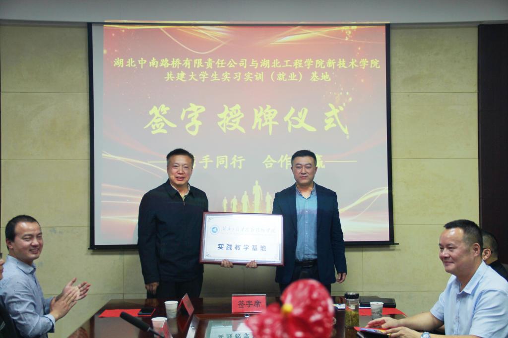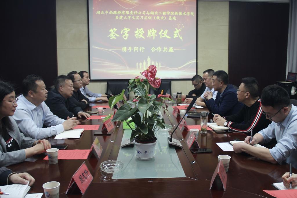 本网讯 4月22日下午,院长李明清、副院长陈友华带领教务处、招就处、党务工作部、城市建设系、财经政法系负责人及相关工作人员前往湖北中南路桥有限责任公司(以下简称“中南路桥”)走访调研,与中南路桥总经理汤国彬、副总经理万成华、李世刚、荆长宏及总工办、综合部相关负责人进行座谈交流,并举行实践教学基地签约授牌仪式。