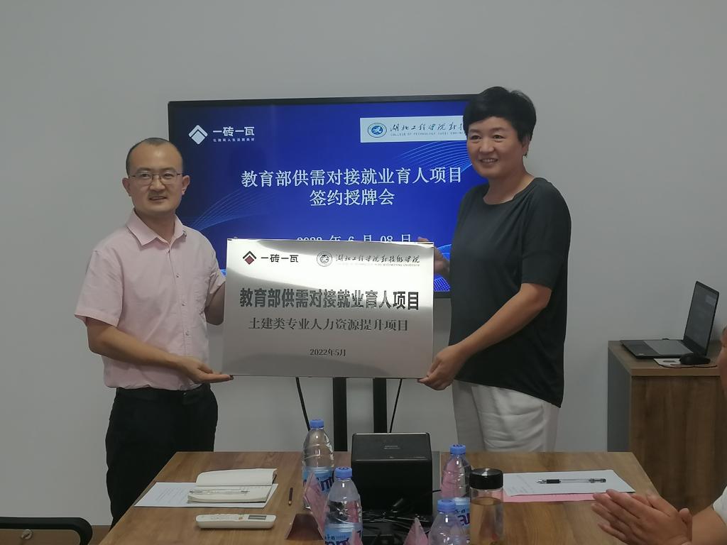 下午,姚娟一行到一砖一瓦科技有限公司湖北分公司进行考察,并与该公司经理李道斌、副经理王伟及技术部、培训部相关负责人进行深入交流。交流会上,姚娟在介绍了Beat365基本情况的基础上表示,一砖一瓦科技有限公司是建筑实训课程、建筑行业职业资格培训很有影响力的企业,专业技术力量雄厚,发展势头良好,感谢该公司为Beat365相关专业学生提供免费的培训和考证服务、实习和就业岗位,期待双方协同育人结出硕果,共同为社会培养出更多的应用型高级专门人才。陈友华、李道斌代表校企双方签订了教育部供需对接就业育人项目签订协议,姚娟、李道斌代表校企双方完成了授牌。