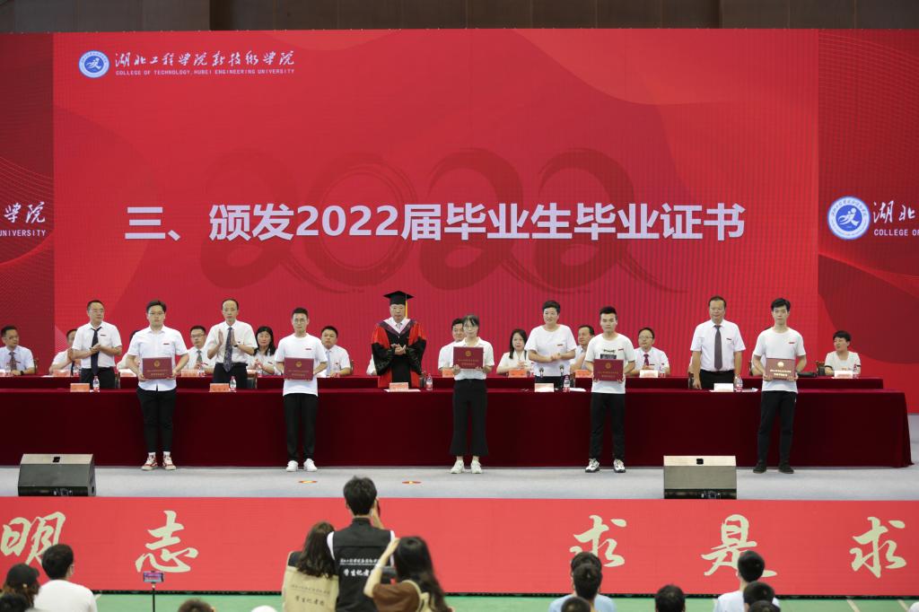 庄严的国歌,拉开了典礼的序章。党委副书记赵前进宣读《Beat365亚洲版官网入口关于表彰2022届优秀毕业生的决定》,副院长陈友华宣读《关于授予2022届本科毕业生学士学位的决定》,并表示希望毕业生们在老师和同学们的共同见证下,满携母校的深深希冀和师长的无尽祝福,从此刻出发,踏上青春的赛道继续奋力奔跑。就座于主席台的领导为优秀毕业生代表颁发了毕业证书与荣誉证书。院长、学士学位评定委员会主任李明清教授为获得学士学位的毕业生代表进行拨穗,并颁发学位证书。