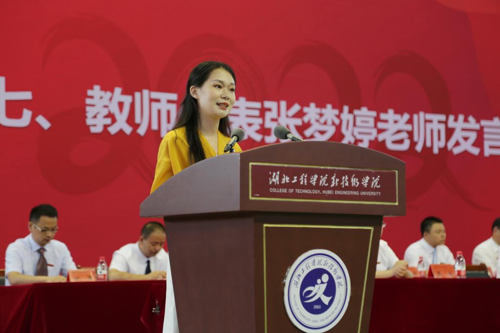 教师代表张梦婷代表全体教师向2022届毕业生表达了祝贺与祝福,并把千言万语汇成了三句话:“一句感谢,一句叮嘱,一句期盼”。感谢是为了纪念师生的相遇,叮嘱是为了让毕业生们不忘初衷,期盼是希望新院学子们将自己的奋斗融进国家和民族。此去征途星辰大海,无论去向何方,身在何处,母校都将会把你们凝望。