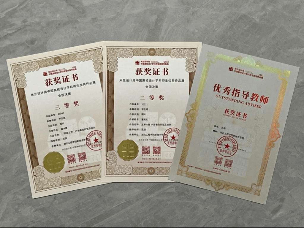 本网讯 日前,2022“米兰设计周——中国高校设计学科师生优秀作品展”全国作品评选结果揭晓,语言文学系设计专业学子在视觉传达设计专业王旋老师的精心指导下再创佳绩,共获得6项大奖,其中国家级二等奖1项,三等奖1项,省级一等奖1项,二等奖1项,三等奖2项。本次比赛为语言文学系学子首次参赛,经过认真筹备,组织校赛,共选拔出13组优秀作品参加省赛、国家赛,获奖率达到了46%。